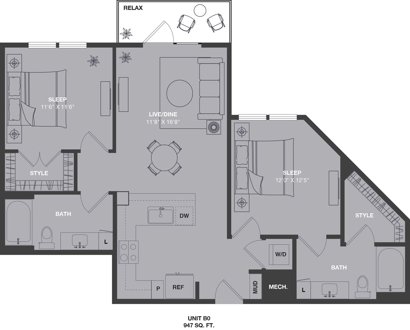 B0 Two Bedroom 947 sqft
